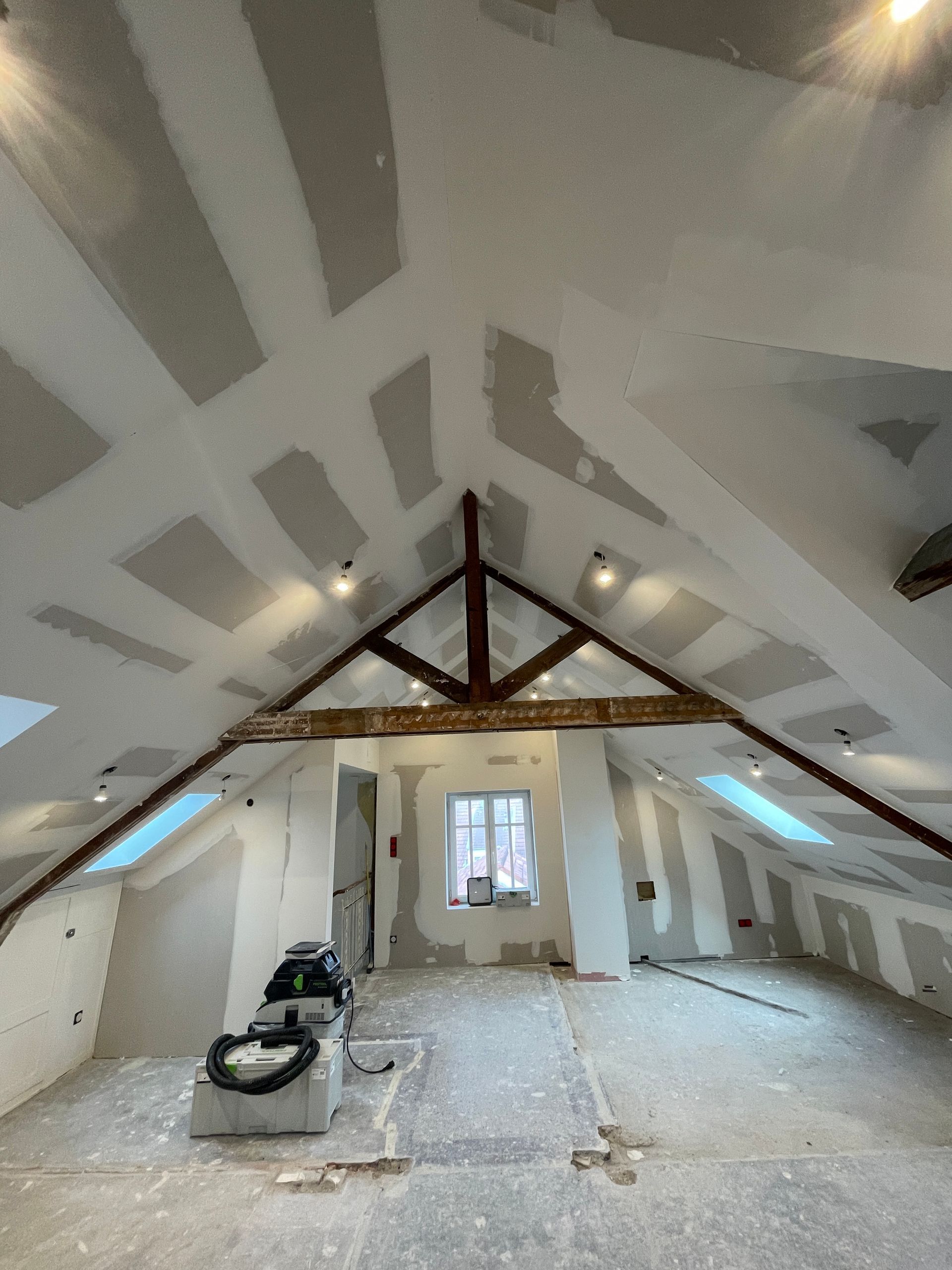 De Metz à Thionville, elle propose une gamme complète de prestations de pose de cloisons sèches et faux plafonds, incluant les techniques de doublages collés ou sur rail. Les travaux de plâtrerie sont réalisés avec soin, notamment la pose de bandes à joint mécanisé sur plaques de plâtre, suivie d’un enduit total des surfaces pour une finition impeccable.